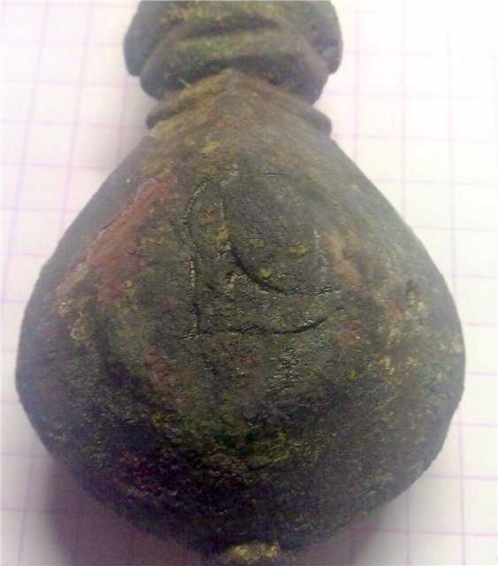 Кистень круглый уплощенный с владельческими знаками графити с обоих сторон, тип 3А по Кирпичникову, 12-13 вв. (фото 3)