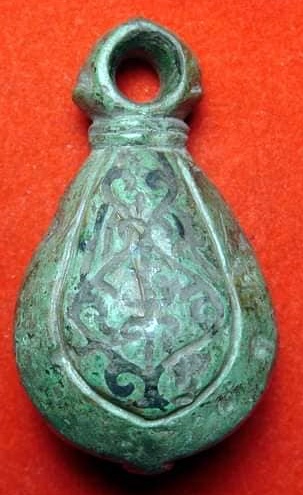 Кистень грушевидный уплощенный с черневым орнаментом, тип 3 по Кирпичникову, вторая половина 12 - 13 вв.