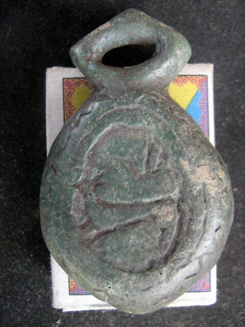Кистень круглый уплощенный с владельческими знаками графити с обоих сторон, тип 3А по Кирпичникову, 12-13 вв. (фото 1)