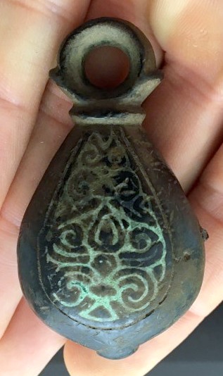 Кистень грушевидный уплощенный с черневым орнаментом, 88,7 гр., тип 3 по Кирпичникову, вторая половина 12 - 13 вв. Черниговская обл. (фото 1)