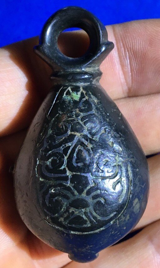 Кистень грушевидный уплощенный с черневым орнаментом, тип 3 по Кирпичникову, вторая половина 12 - 13 вв. (фото 2)