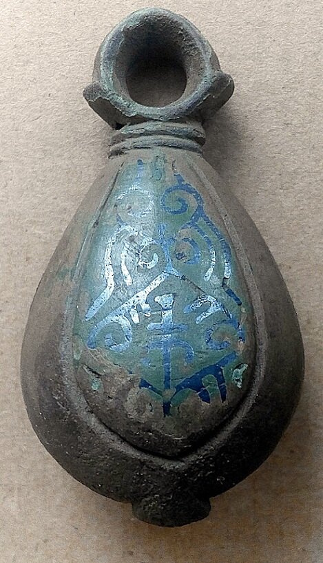 Кистень грушевидный уплощенный с черневым орнаментом, тип 3 по Кирпичникову, вторая половина 12 - 13 вв. Крым (фото 1)