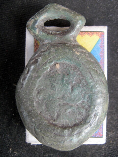 Кистень круглый уплощенный с владельческими знаками графити с обоих сторон, тип 3А по Кирпичникову, 12-13 вв. (фото 2)