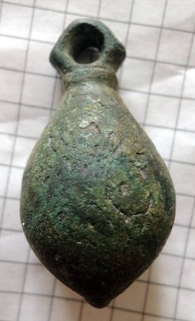 Кистень грушевидный уплощенный с черневым орнаментом, 100 гр., тип 3 по Кирпичникову, вторая половина 12 - 13 вв. (фото 2)