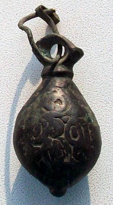 Кистень грушевидный уплощенный с черневым орнаментом, тип 3 по Кирпичникову, вторая половина 12 - 13 вв.