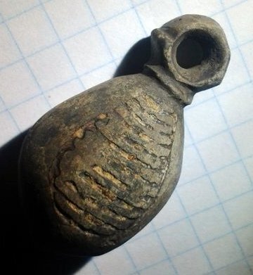 Кистень грушевидный уплощенный с черневым орнаментом, тип 3 по Кирпичникову, вторая половина 12 - 13 вв.