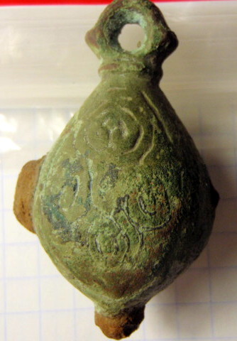 Кистень грушевидный уплощенный с черневым орнаментом, тип 3 по Кирпичникову, вторая половина 12 - 13 вв. (фото 1)