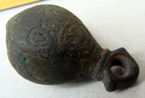 Кистень грушевидный уплощенный с черневым орнаментом, тип 3 по Кирпичникову, вторая половина 12 - 13 вв. (фото 2)