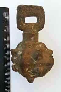 Кистень в виде куба со срезанными углами и напаянными шипами, железо, 4 тип по Кирпичникову, 12 - первая половина 13 вв. (фото 1)