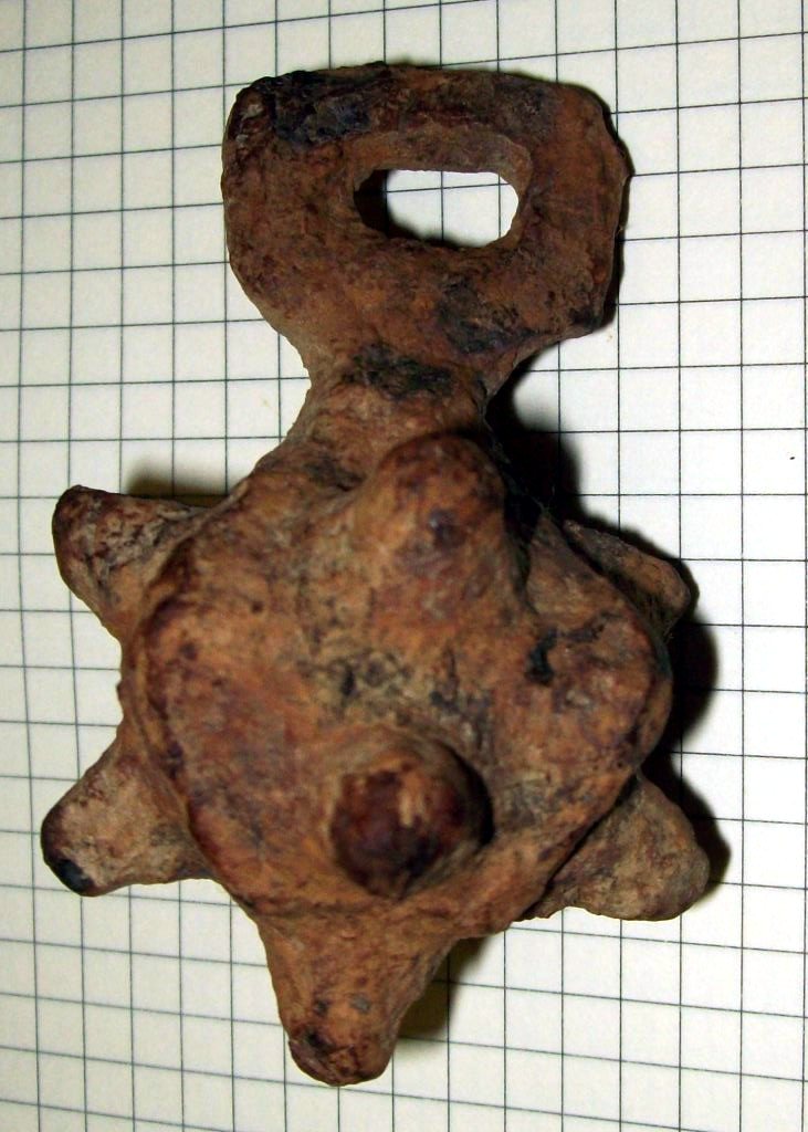 Кистень в виде куба со срезанными углами и напаянными шипами, железо, 4 тип по Кирпичникову, 12 - первая половина 13 вв. (фото 1)