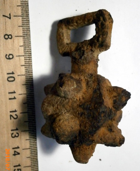 Кистень в виде куба со срезанными углами и напаянными шипами, 235 гр., железо, 4 тип по Кирпичникову, 12 - первая половина 13 вв. (фото 1)