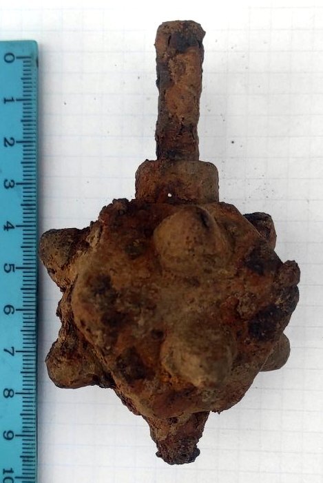 Кистень в виде куба со срезанными углами и напаянными шипами, 466 гр., железо, 4 тип по Кирпичникову, 12 - первая половина 13 вв. Хмельницкая обл. (фото 2)