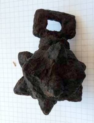 Кистень в виде куба со срезанными углами и напаянными шипами, 385 гр., железо, 4 тип по Кирпичникову, 12 - первая половина 13 вв. Волынская обл. (фото 1)