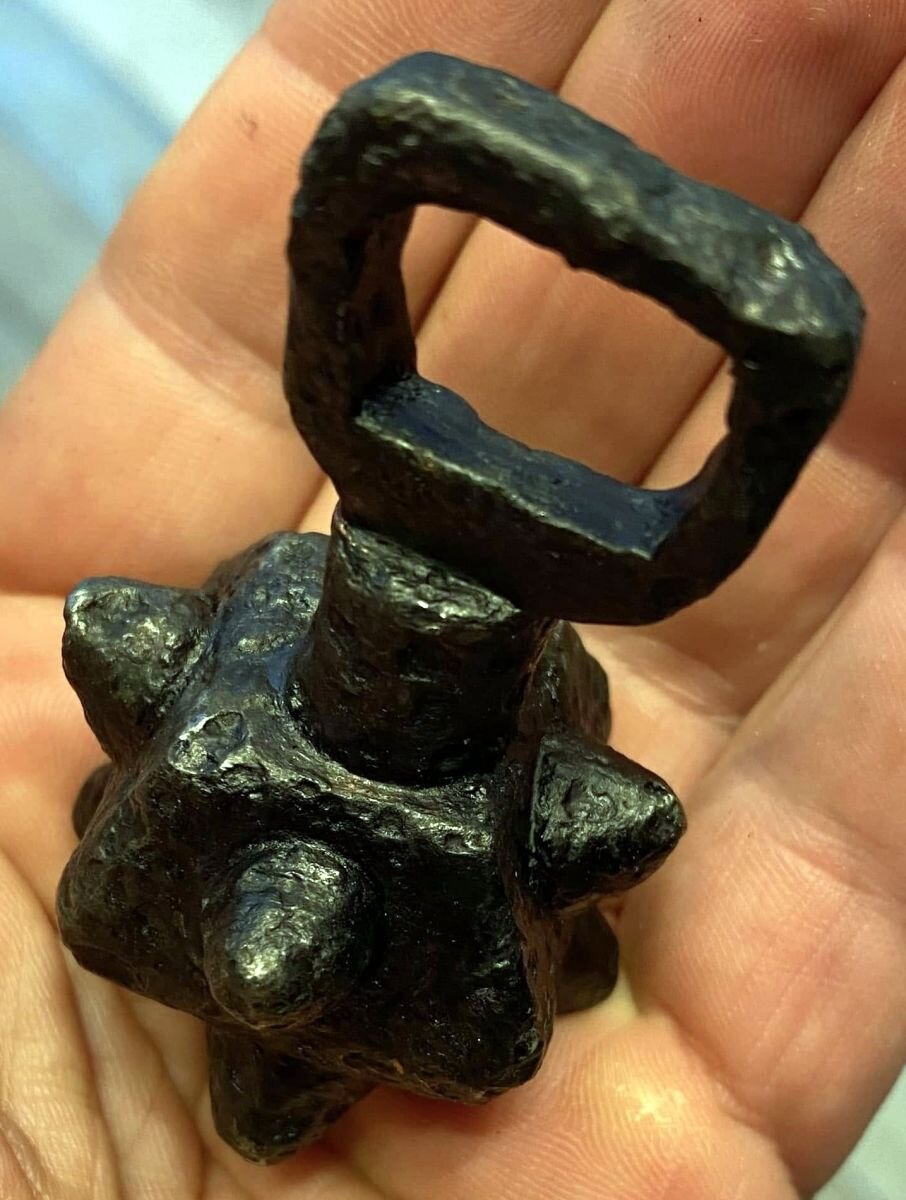 Кистень в виде куба со срезанными углами и напаянными шипами, железо, 4 тип по Кирпичникову, 12 - первая половина 13 вв. (фото 1)