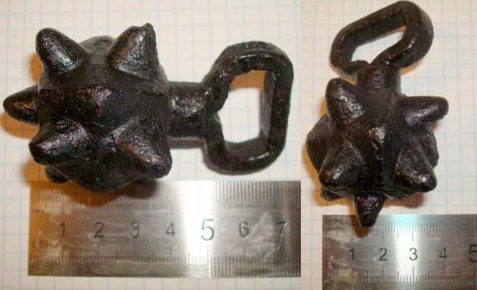 Кистень в виде куба со срезанными углами и напаянными шипами, железо, 4 тип по Кирпичникову, 12 - первая половина 13 вв.