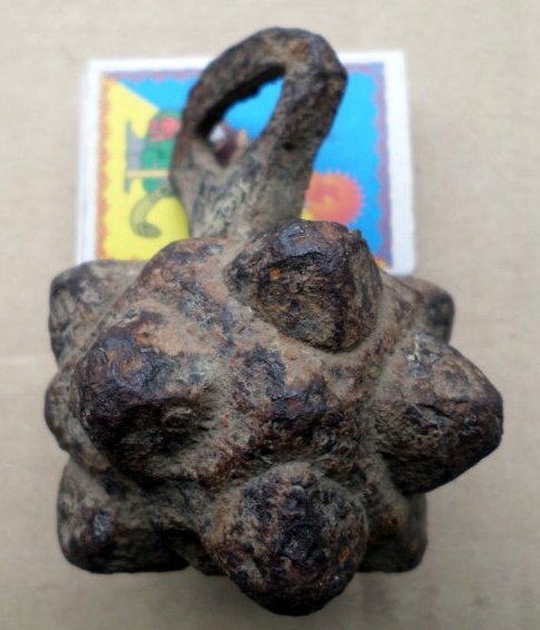 Кистень в виде куба со срезанными углами и напаянными шипами, 440 гр., железо, 4 тип по Кирпичникову, 12 - первая половина 13 вв. Херсонская обл., Генический район