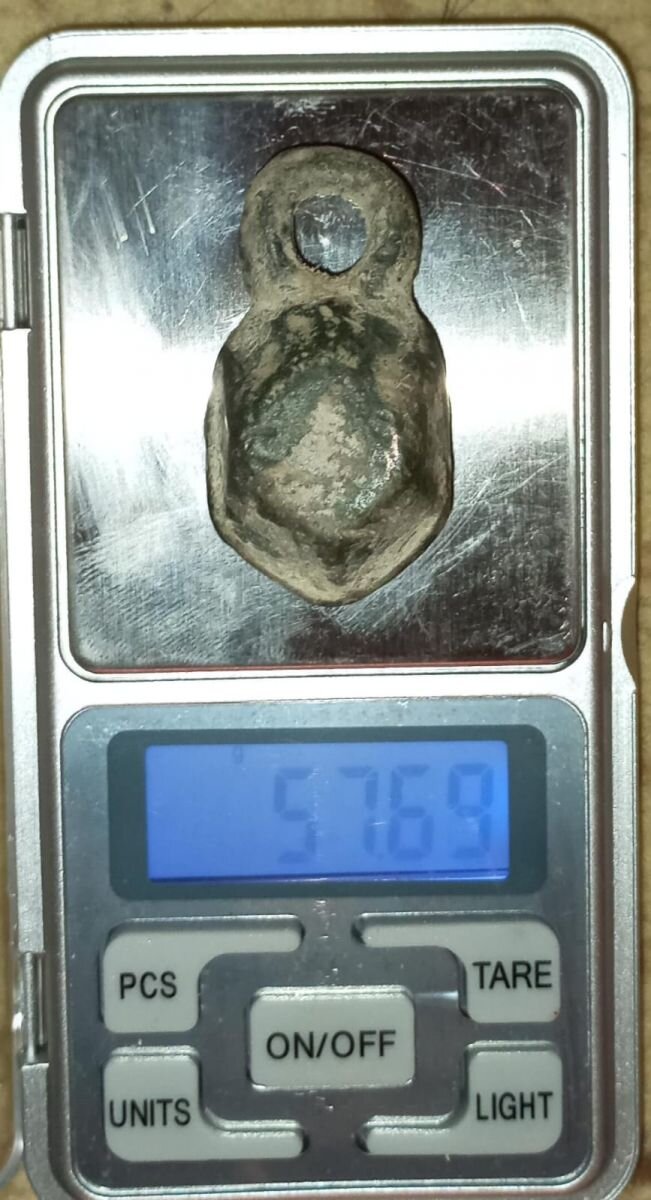Кистень в виде куба со срезанными углами, 57,69 гр., 4 тип по Кирпичникову, 12 - первая половина 13 вв.