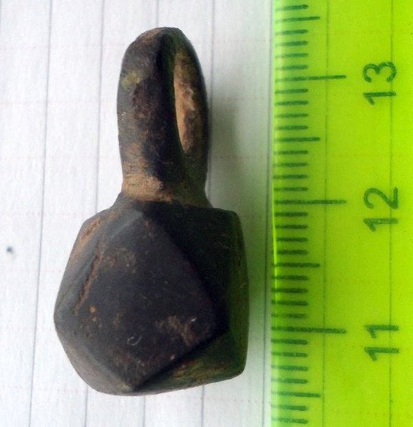 Кистень в виде куба со срезанными углами, 16,79 гр., 4 тип по Кирпичникову, 12 - первая половина 13 вв. (фото 1)