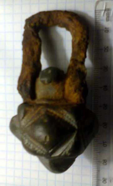 Кистень имитирующий булаву с шипами с железным подвижным ухом, 295 гр., тип 5 по Кирпичникову, 12-13 вв. (фото 1)