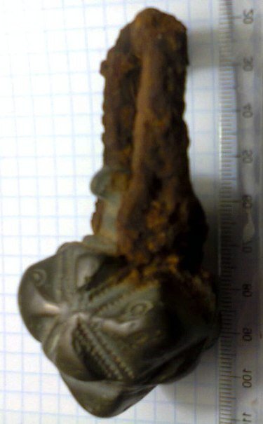 Кистень имитирующий булаву с шипами с железным подвижным ухом, 295 гр., тип 5 по Кирпичникову, 12-13 вв. (фото 4)