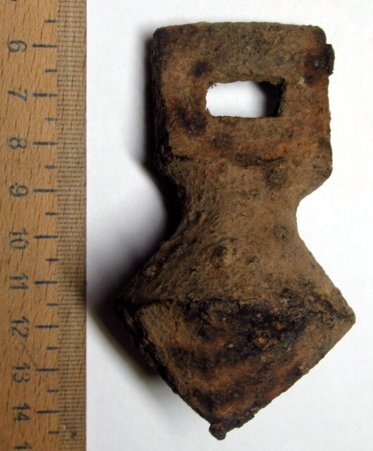 Кистень биконической формы с квадратным ушком, 356,5 гр., тип 6 по Кирпичникову, 12-13 вв. Днепропетровская обл.