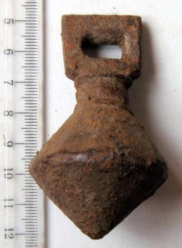 Кистень биконической формы с квадратным ушком, тип 6 по Кирпичникову, 12-13 вв. Крым