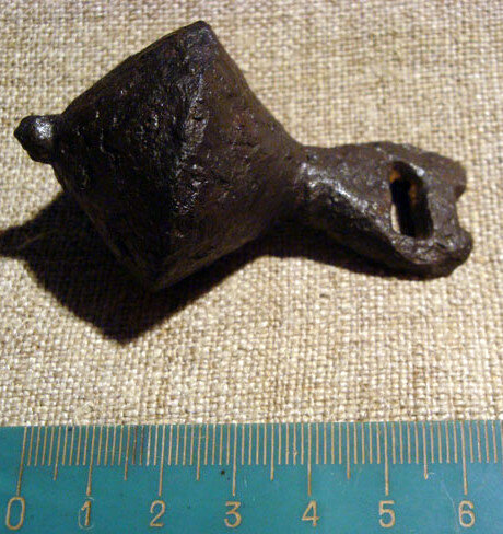 Кистень биконической формы с квадратным ушком, тип 6 по Кирпичникову, 12-13 вв. (фото 2)