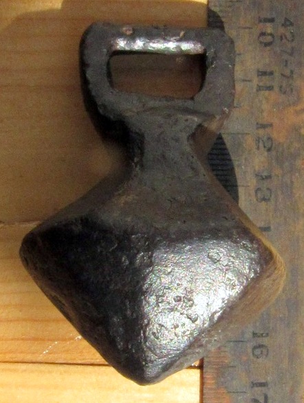 Кистень биконической формы с квадратным ушком, тип 6 по Кирпичникову, 12-13 вв.