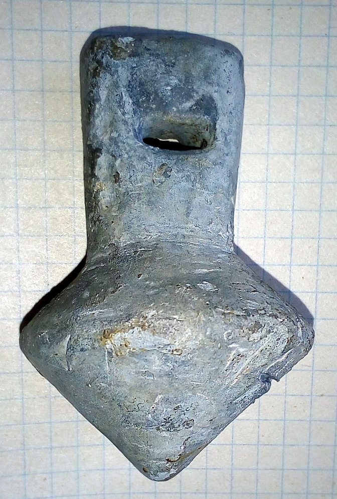 Кистень биконической формы с квадратным ушком, свинец, 412 гр., тип 6 по Кирпичникову, 12-13 вв. Полтавская обл. берег р. Псел (фото 1)