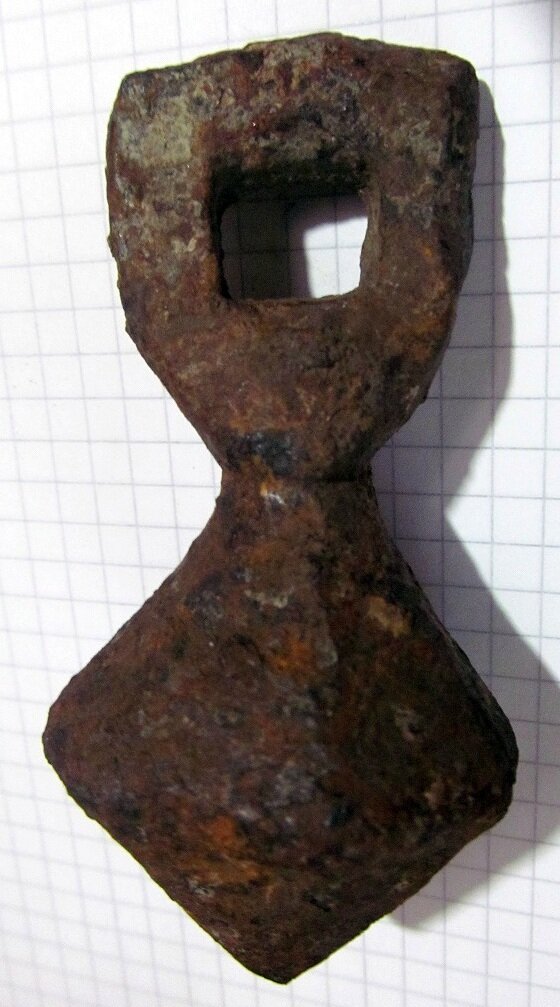 Кистень биконической формы с квадратным ушком, тип 6 по Кирпичникову, 12-13 вв. Одесская обл.