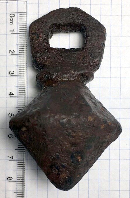 Кистень биконической формы с квадратным ушком, 297 гр., тип 6 по Кирпичникову, 12-13 вв. (фото 1)