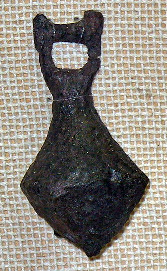 Кистень биконической формы с квадратным ушком, тип 6 по Кирпичникову, поселение Серенск, 13 вв.