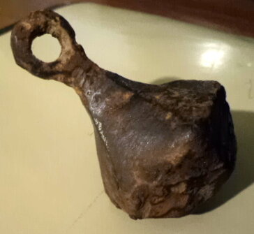 Кистень биконической формы с квадратным ушком, 156,5 гр., тип 6 по Кирпичникову, 12-13 вв.