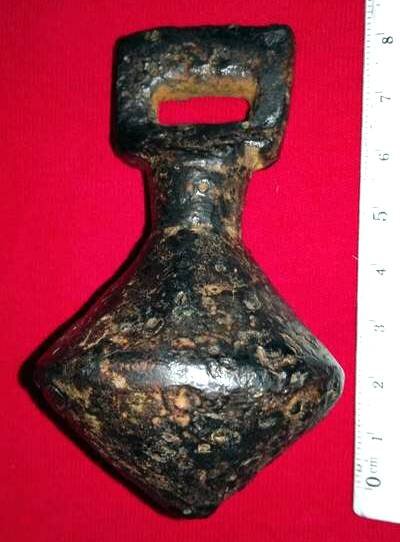 Кистень биконической формы с квадратным ушком, 324 гр., тип 6 по Кирпичникову, 12-13 вв. Хмельницкая обл.