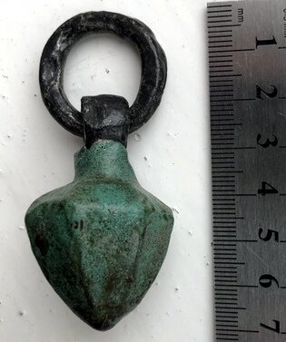Кистень биконической формы с квадратным ушком биметаллический, 114 гр., тип 6 по Кирпичникову, 12-13 вв. Киевская обл.