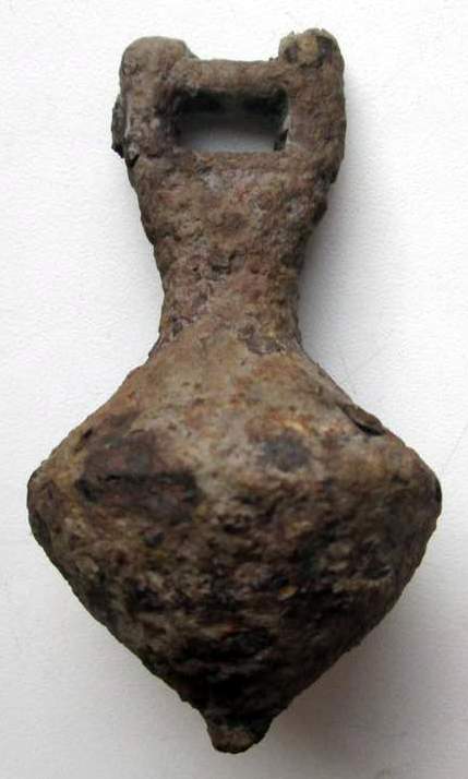 Кистень биконической формы с квадратным ушком, тип 6 по Кирпичникову, 12-13 вв. (фото 1)