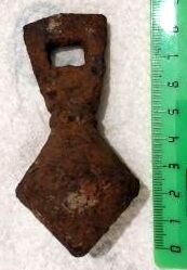 Кистень биконической формы с квадратным ушком, 257 гр., тип 6 по Кирпичникову, 12-13 вв. Крым
