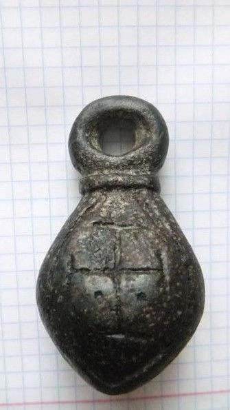 Кистень грушевидный уплощенный с орнаментом в виде креста, 316 гр., тип 3 по Кирпичникову, вторая половина 12 - 13 вв. Львовская обл. (фото 1)