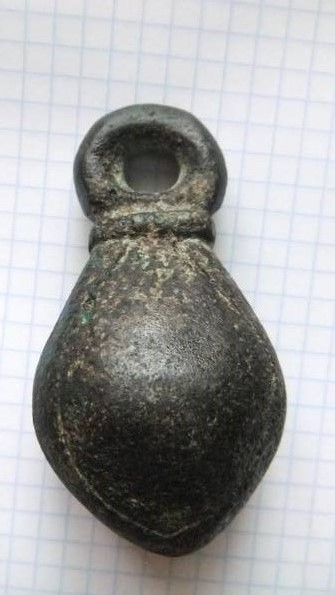Кистень грушевидный уплощенный с орнаментом в виде креста, 316 гр., тип 3 по Кирпичникову, вторая половина 12 - 13 вв. Львовская обл. (фото 2)