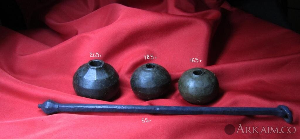 1-3 - Гири кистеней шаровидные (265 гр., 185 гр., 165 гр.), 8-10 вв.