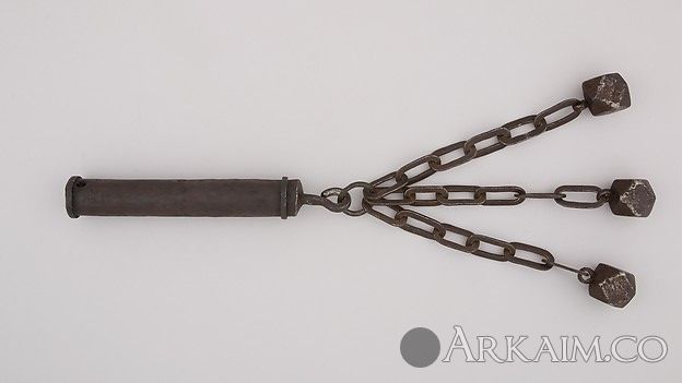 Iron; L. 19 1/2 in. (49.5 cm); L. of each head and chain 11 5/8 in (29.5 cm); greatest W. 1 1/2 in. (3.8 cm); Wt. 2 lb 2 oz. (963.9 cm)