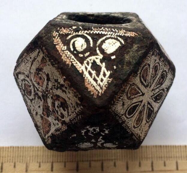Булава в виде куба с усеченными гранями с ташуировкой, железо, 362 гр., тип 2 по Кирпичникову (фото 1)