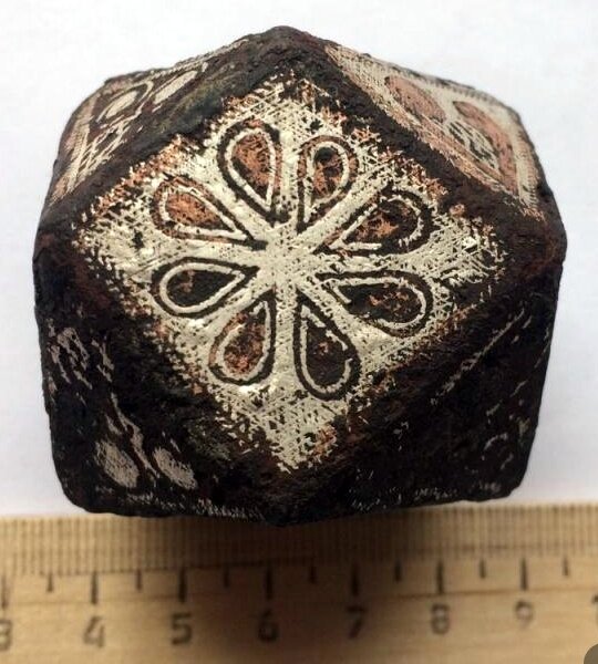 Булава в виде куба с усеченными гранями с ташуировкой, железо, 362 гр., тип 2 по Кирпичникову (фото 4)