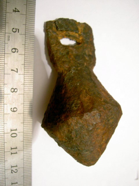 Кистень биконической формы с квадратным ушком, тип 6 по Кирпичникову, 12-13 вв.