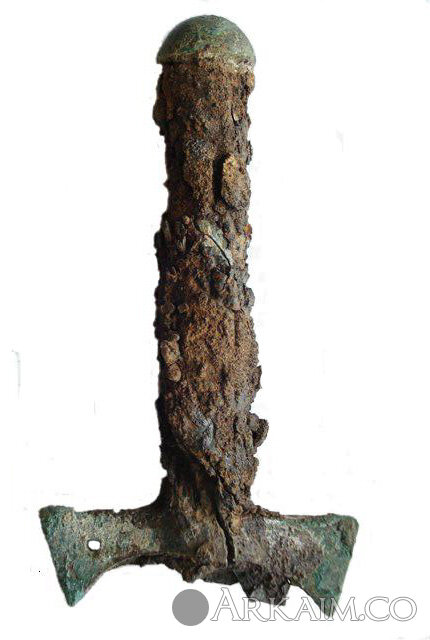 железная округлая в сечении рукоять с бронзовым грибовидным навершием и перекрестием,Ставропольский край
