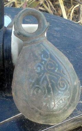 Кистень грушевидный уплощенный с черневым орнаментом, тип 3 по Кирпичникову, вторая половина 12 - 13 вв.