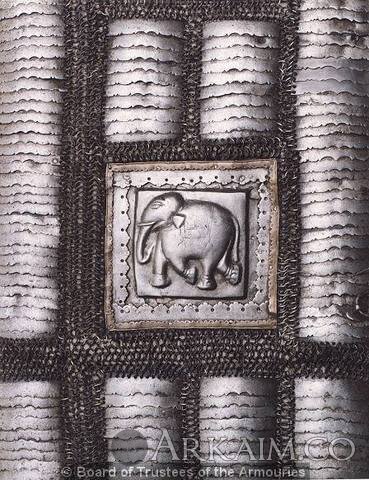 Королевский Арсенал в Лидсе. Судя по всему, он был изготовлен в конце XVI - начале XVII века и вывезен в Англию в 1801 году женой сэра Роберта Клайва, бывшего в то время губернатором Мадраса. В настоящее время этот доспех надет на изготовленную в натуральную величину фигуру слона из стеклопластика, которая экспонируется в Восточной галерее Арсенала. (фото 2)