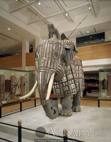 Королевский Арсенал в Лидсе. Судя по всему, он был изготовлен в конце XVI - начале XVII века и вывезен в Англию в 1801 году женой сэра Роберта Клайва, бывшего в то время губернатором Мадраса. В настоящее время этот доспех надет на изготовленную в натуральную величину фигуру слона из стеклопластика, которая экспонируется в Восточной галерее Арсенала. (фото 4)