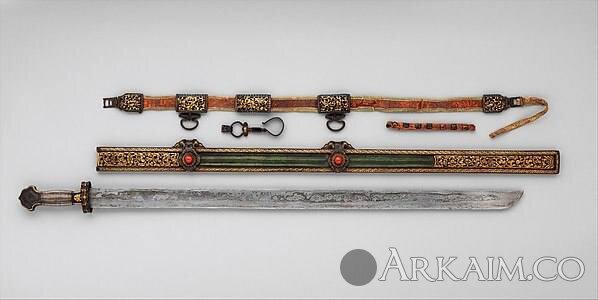 Меч, ножны и пояс с крючком сталь, медь, золото, серебро, дерево, кожа, коралл общая длина 125,1 см 18 век, Тибет The Metropolitan Museum of Art