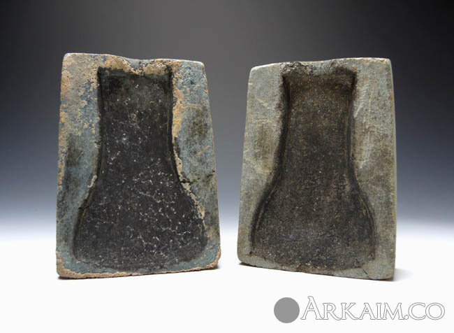 Каменная литейная форма для отливки тесловидных топоров двух типов, 10,5 х 7,5 см, 2000-1000 гг. до н.э. Центральная Азия (фото 1)